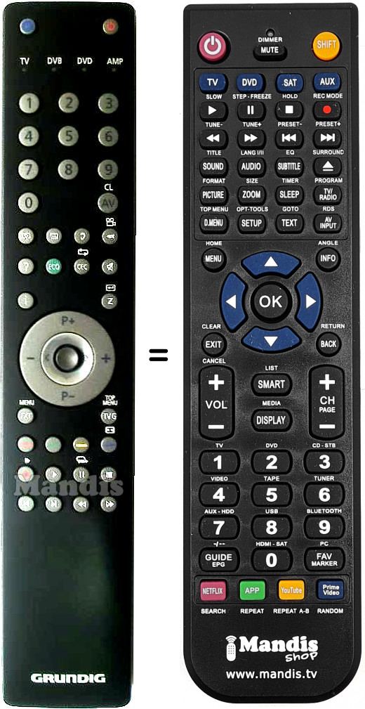 Cette télécommande est adaptée pour différentes marques: AQP, Grundig, Minerva