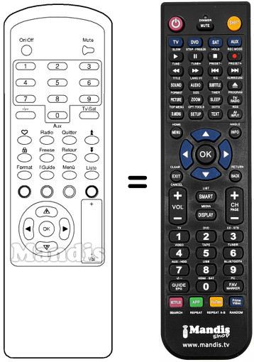 Télécommande qui remplace celle d'origine car elle possède les mêmes fonctions.
