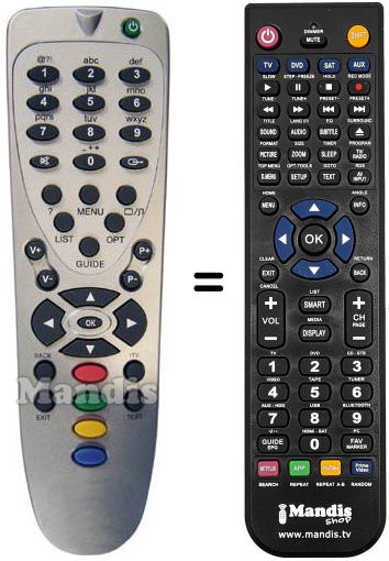 Télécommande qui remplace celle d'origine car elle possède les mêmes fonctions.