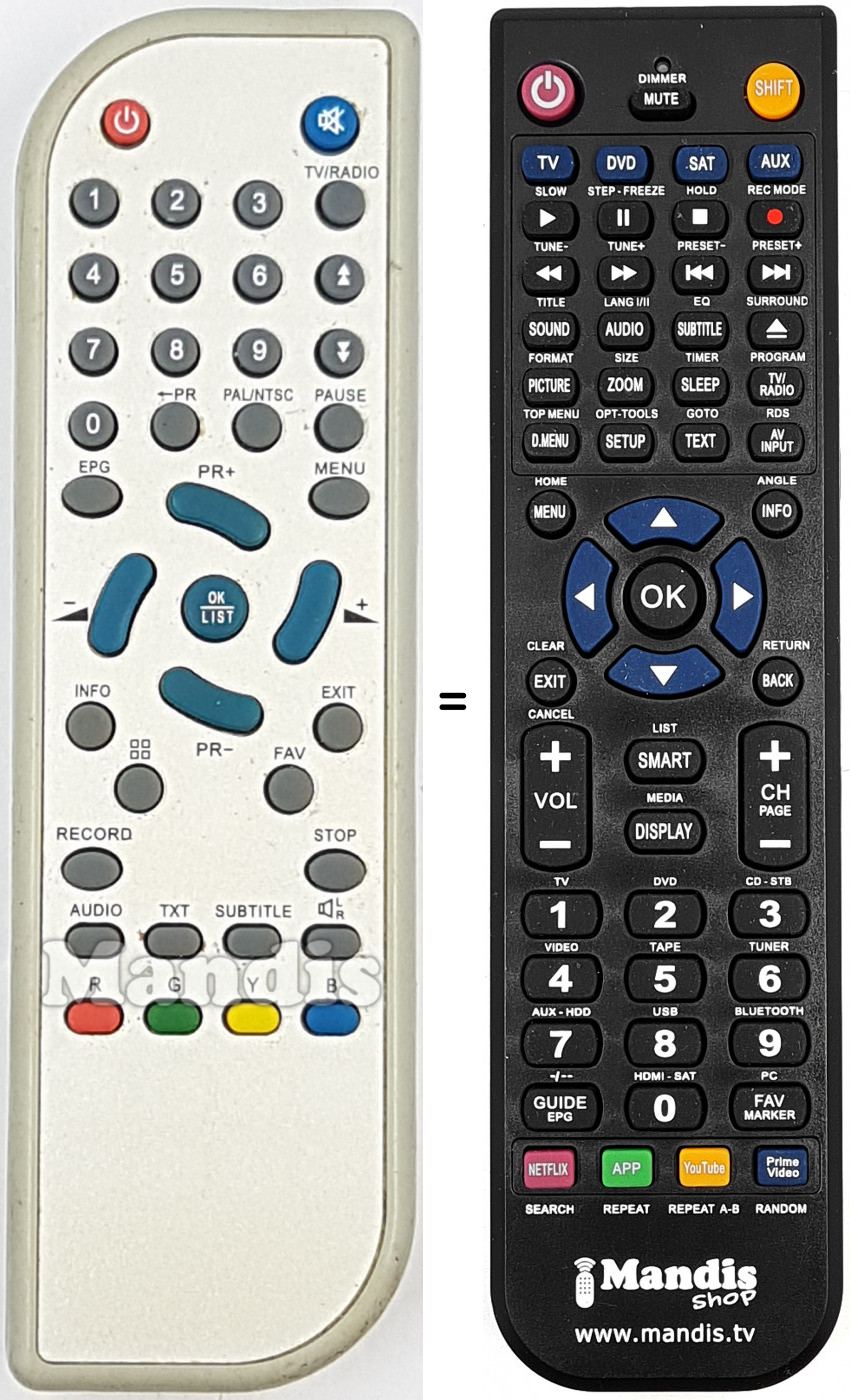 Télécommande qui remplace celle d'origine car elle possède les mêmes fonctions.