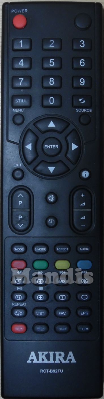 Télécommande d'origine RCTB92TU pour combiné de la marque AKIRA. Il s'agit d'un modèle de télécommande d'origine.