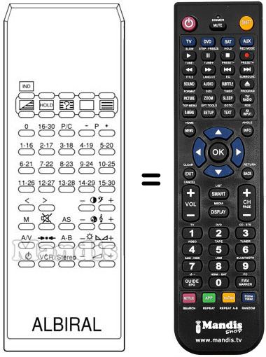 Télécommande qui remplace celle d'origine car elle possède les mêmes fonctions.