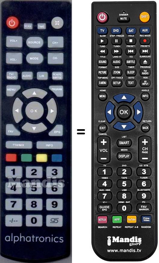Télécommande qui remplace celle d'origine car elle possède les mêmes fonctions.