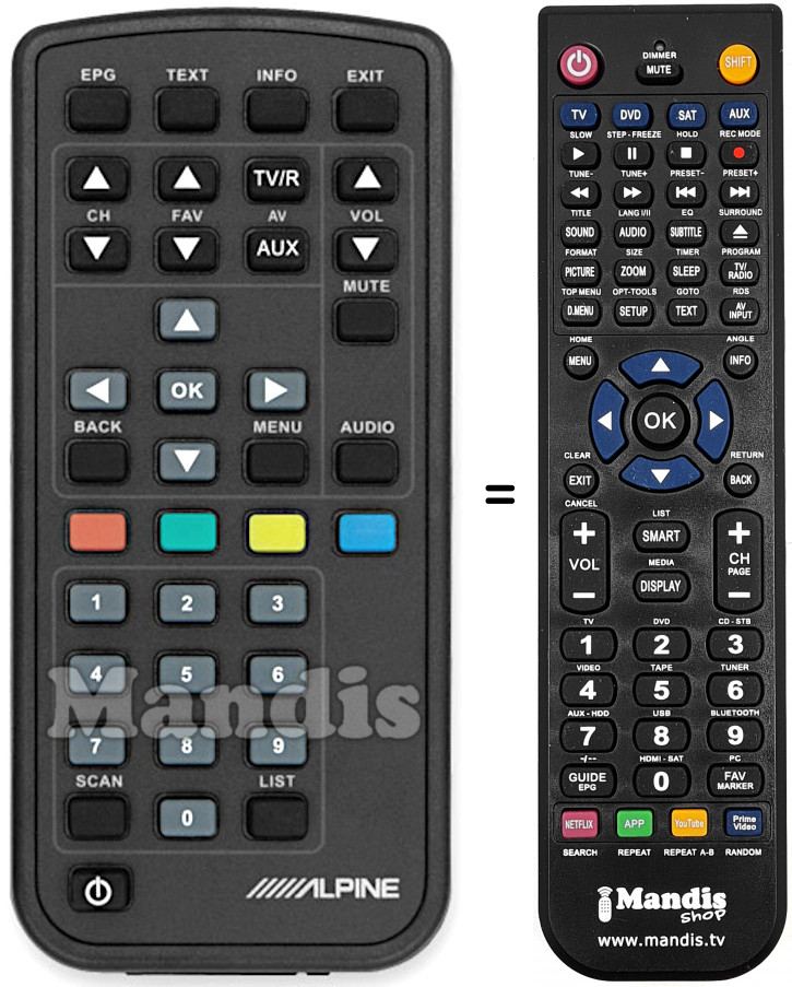 Télécommande qui remplace celle d'origine car elle possède les mêmes fonctions.