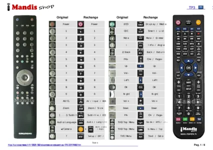 Un document est inclus pour vous aider à utiliser facilement la nouvelle télécommande, en indiquant la correspondance des boutons.