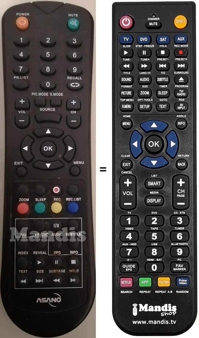 Télécommande qui remplace celle d'origine car elle possède les mêmes fonctions.