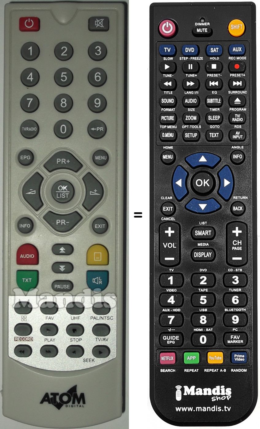 Télécommande qui remplace celle d'origine car elle possède les mêmes fonctions.