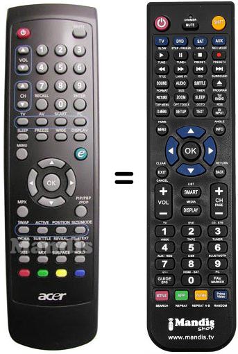Télécommande qui remplace celle d'origine car elle possède les mêmes fonctions.