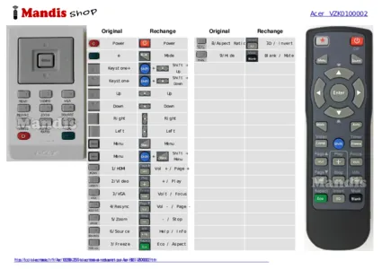 Télécommande rechange VZK0100001 de la marque Acer.