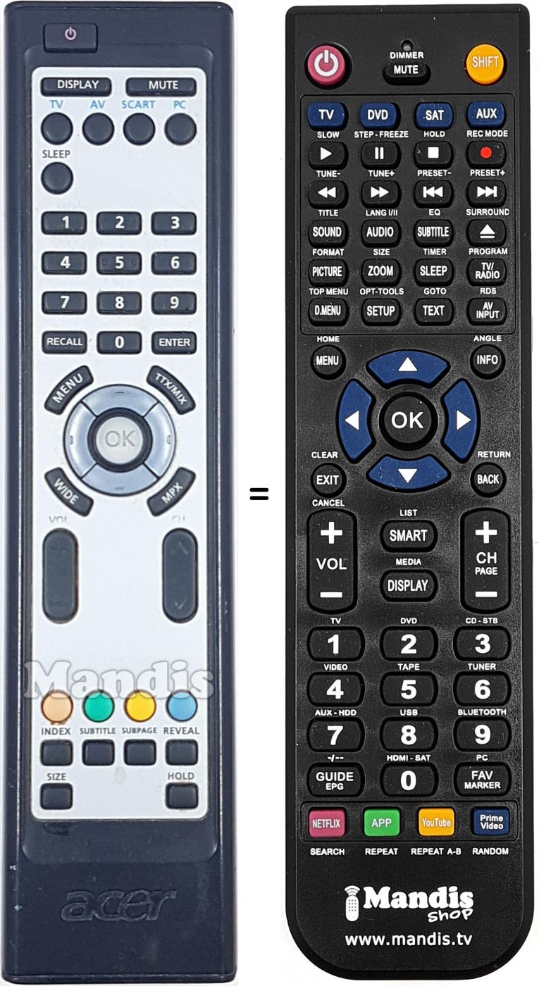Télécommande qui remplace celle d'origine car elle possède les mêmes fonctions.