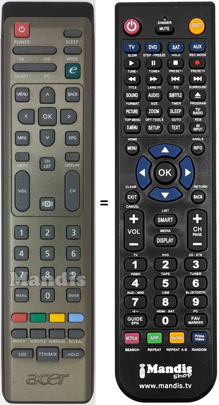 Télécommande qui remplace celle d'origine car elle possède les mêmes fonctions.