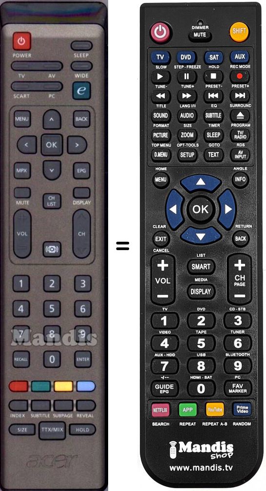 Télécommande qui remplace celle d'origine car elle possède les mêmes fonctions.