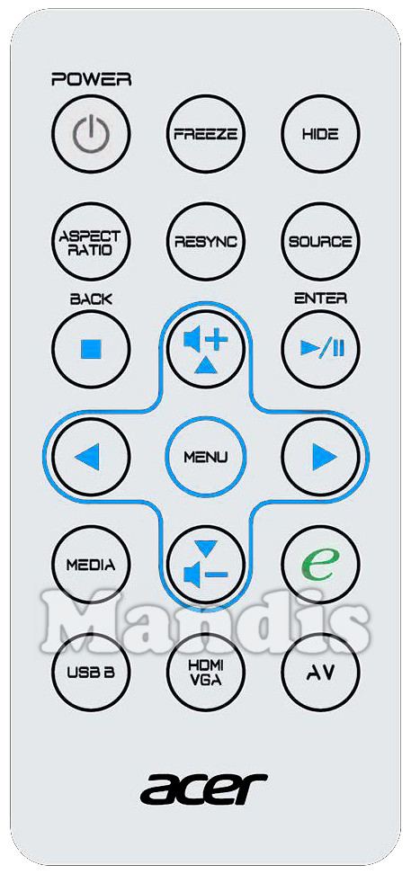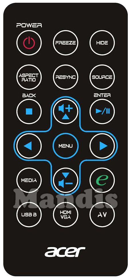 Télécommandes équivalentes qui remplacent la télécommande ACER VZ.JCN00.001 et possèdent exactement les mêmes fonctions :