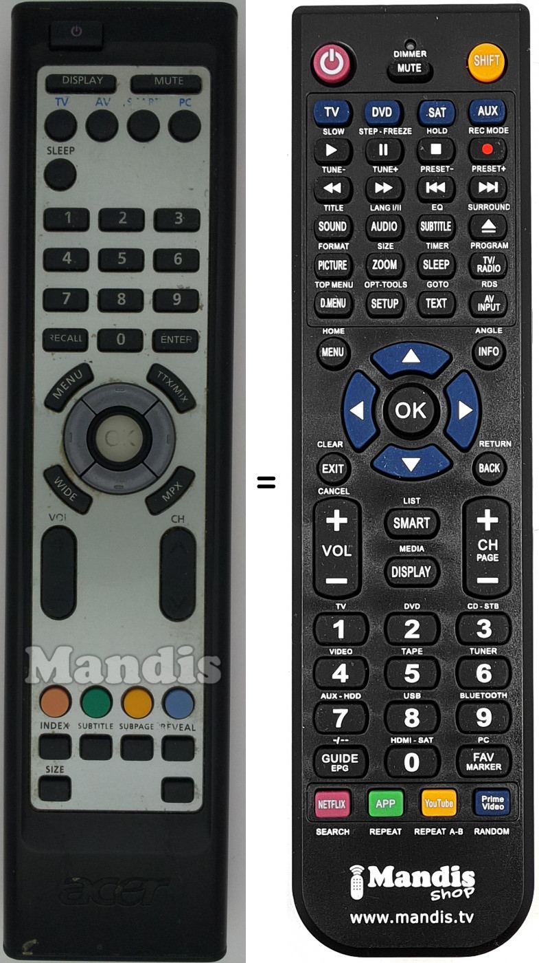 Télécommande qui remplace celle d'origine car elle possède les mêmes fonctions.