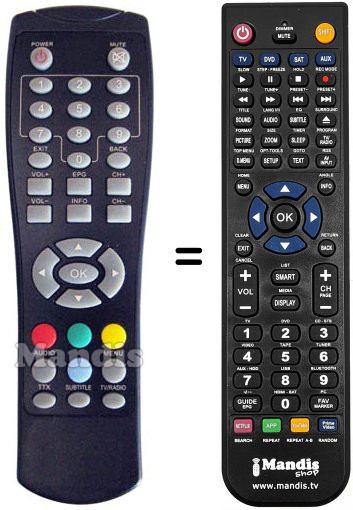 Télécommande qui remplace celle d'origine car elle possède les mêmes fonctions.