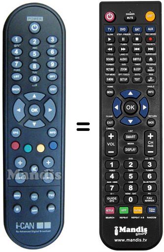 Télécommande qui remplace celle d'origine car elle possède les mêmes fonctions.