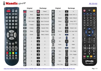 Un document est inclus pour vous aider à utiliser facilement la nouvelle télécommande, en indiquant la correspondance des boutons.