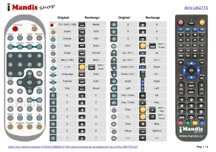 Un document est inclus pour vous aider à utiliser facilement la nouvelle télécommande, en indiquant la correspondance des boutons.
