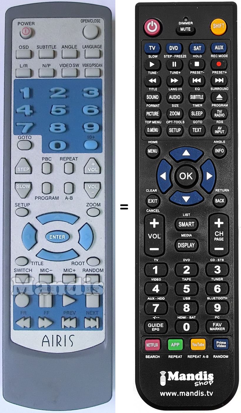Télécommande qui remplace celle d'origine car elle possède les mêmes fonctions.
