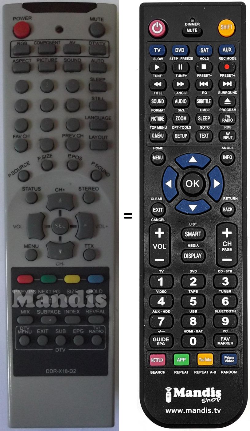 Télécommande qui remplace celle d'origine car elle possède les mêmes fonctions.