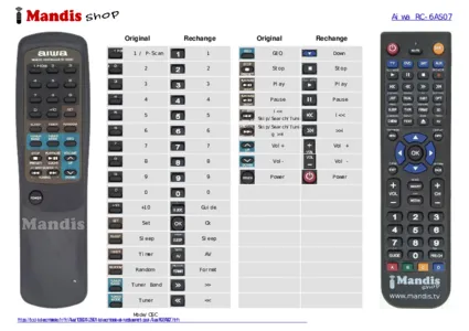 Accueil > Marques > Télécommandes Aiwa > Télécommande pour AIWA RC-6AS07