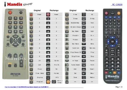 Un document est inclus pour vous aider à utiliser facilement la nouvelle télécommande, en indiquant la correspondance des boutons.