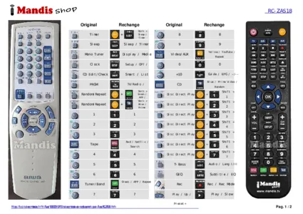 Cette télécommande remplace la plupart des fonctions de votre RC-ZAS18. Il ne s'agit pas d'une télécommande universelle, mais d'une copie avec la plupart des touches et des fonctions de votre télécommande d'origine.