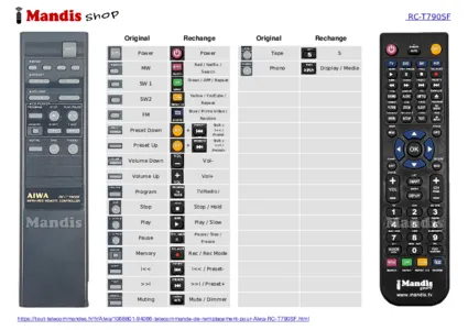 Cette télécommande remplace entièrement votre RC-T790SF et offre toutes les fonctions de l'originale.