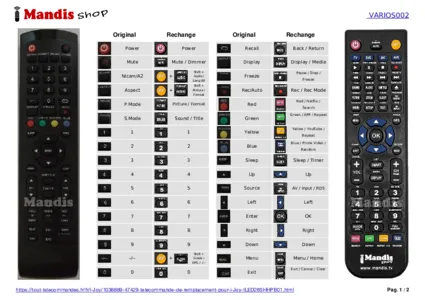 Un document est inclus pour vous aider à utiliser facilement la nouvelle télécommande, en indiquant la correspondance des boutons.