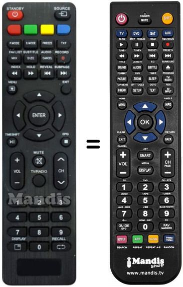 Télécommande qui remplace celle d'origine car elle possède les mêmes fonctions.