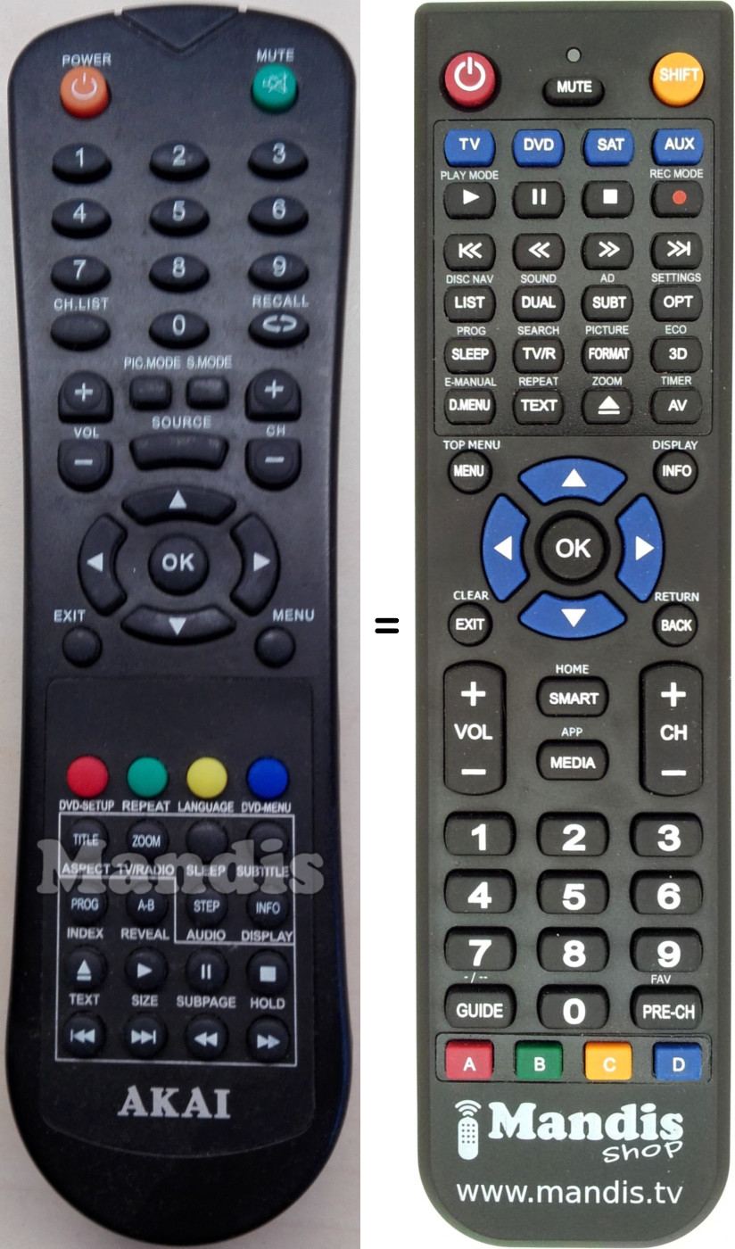 Cette télécommande remplace entièrement votre AKTV201D et offre toutes les fonctions de l'originale.