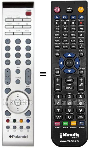 Ci-dessous, nous vous montrerons la correspondance entre chaque bouton de la télécommande d'origine et le bouton qui effectue la même fonction sur la télécommande de remplacement. Dans certains cas, vous devrez peut-être appuyer sur la touche SHIFT avant d'appuyer sur un autre bouton pour effectuer certaines actions. Ces fonctions supplémentaires sont souvent peu utilisées et sont incluses pour faciliter la compréhension de la télécommande de remplacement, ou parce que la télécommande d'origine comporte plus de boutons que son équivalent.