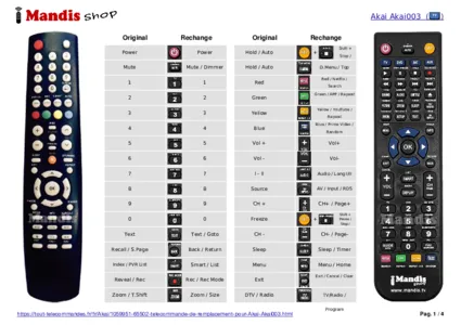 Un document est inclus pour vous aider à utiliser facilement la nouvelle télécommande, en indiquant la correspondance des boutons.