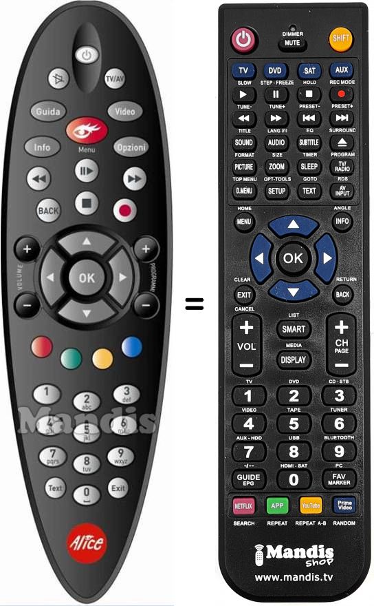Télécommande qui remplace celle d'origine car elle possède les mêmes fonctions.