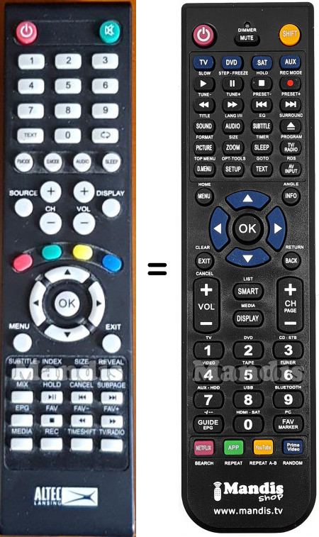 Cette télécommande remplace entièrement votre AL-TV40FHD-001 et offre toutes les fonctions de l'originale.