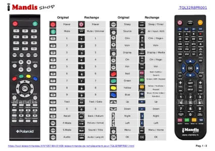 Un document est inclus pour vous aider à utiliser facilement la nouvelle télécommande, en indiquant la correspondance des boutons.
