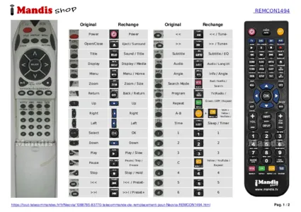 Un document est inclus pour vous aider à utiliser facilement la nouvelle télécommande, en indiquant la correspondance des boutons.