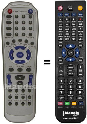 Télécommande qui remplace celle d'origine car elle possède les mêmes fonctions.