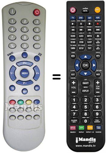 Télécommande qui remplace celle d'origine car elle possède les mêmes fonctions.