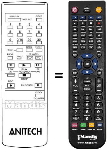 Télécommande qui remplace celle d'origine car elle possède les mêmes fonctions.