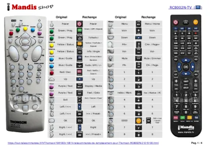 Un document est inclus pour vous aider à utiliser facilement la nouvelle télécommande, en indiquant la correspondance des boutons.