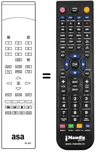 Télécommande qui remplace la télécommande d'origine RC 505 car elle possède les mêmes fonctions.