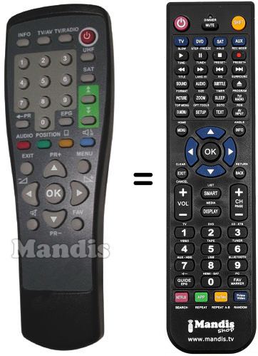 Télécommande qui remplace celle d'origine car elle possède les mêmes fonctions.