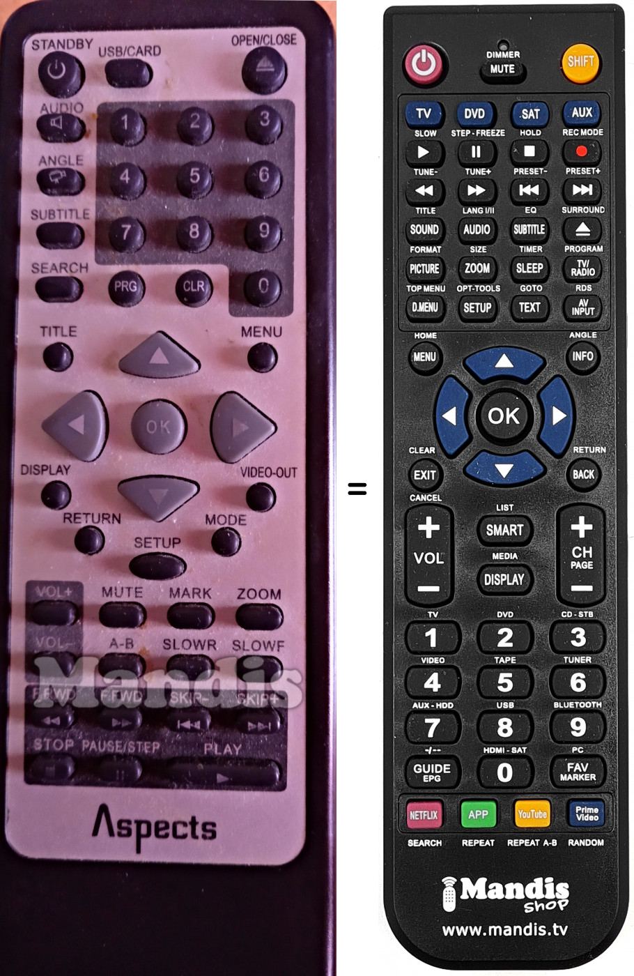 Télécommande qui remplace celle d'origine car elle possède les mêmes fonctions.