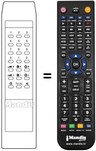 Il ne s'agit pas d'une télécommande universelle mais d'une télécommande qui remplace celle d'origine.
