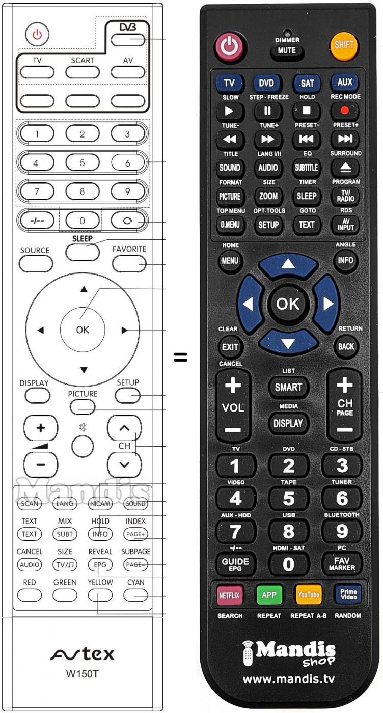 Télécommande qui remplace celle d'origine car elle possède les mêmes fonctions.