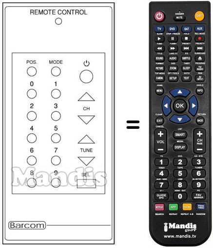 Télécommande qui remplace celle d'origine car elle possède les mêmes fonctions.