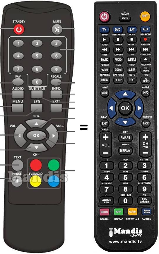 Télécommande qui remplace celle d'origine car elle possède les mêmes fonctions.