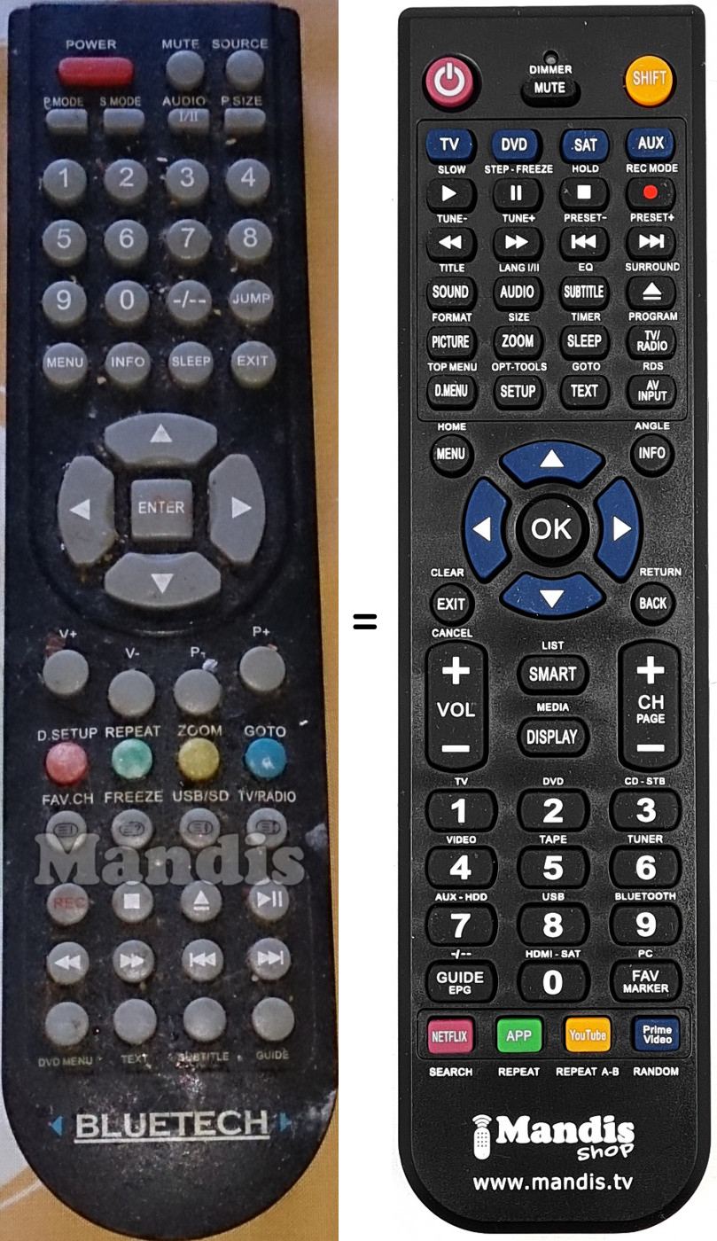 Télécommande qui remplace celle d'origine car elle possède les mêmes fonctions.