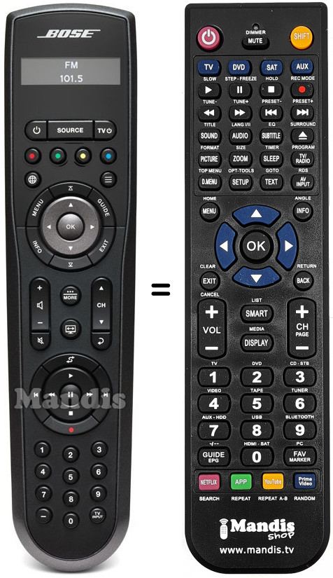 Télécommande qui remplace celle d'origine car elle possède les mêmes fonctions.